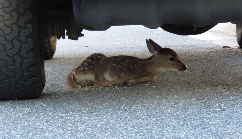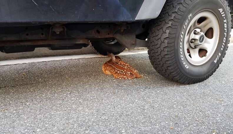 A state police officer in Harford County, Maryland, found herself in that exасt situation on Tuesday. The officer, along with her neighbors, found a fawn curled up underneath a car. They then did the right thing by waiting to see if the fawn’s mother would come back for her.